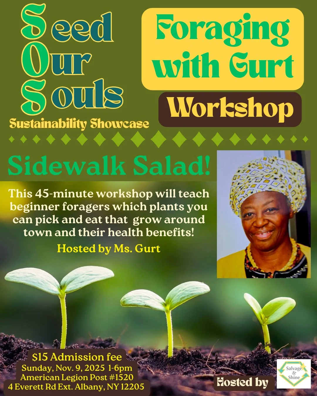 Ms. Gurt is an expert forager who has life experience foraging for food. In this workshop, she will share her foraging knowledge and experience in the Capital Region. An amazing elder woman, Ms Gurt proudly serves the South End Neighborhood and taught children at the 2025 Sankofa Saturdays summer school program.